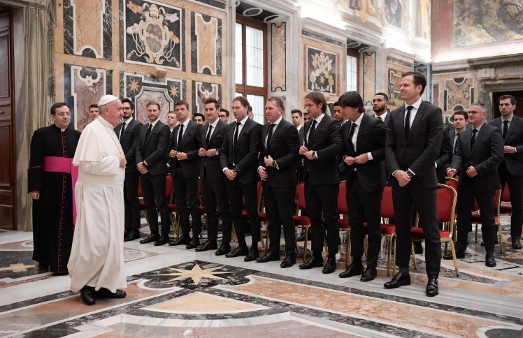 “Sono lieto di salutare gli attuali campioni del mondo di calcio qui in Vaticano”, ha detto il Papa, ringraziando sia il presidente Grindel che il capitano Neuer. “Ho sentito spesso dire che le vostre vittorie sono vittorie di squadra”, ha proseguito Francesco, osservando che “lo sport agonistico richiede non soltanto tanta disciplina e sacrificio personale, ma anche rispetto per il prossimo e spirito di squadra. Ciò vi porta al successo come ‘Mannschaft’ e vi porta nello stesso tempo a riconoscere la vostra responsabilità al di là del campo di calcio, soprattutto verso i giovani che spesso vi prendono come modello. E vi porta anche a impegnarvi insieme per alcuni importanti obiettivi sociali”. A questo proposito, il Papa ha ringraziato i campioni del mondo tedeschi per il loro supporto agli “Sternsinger”, i “Cantori della Stella”, il cui obiettivo è “aiutare concretamente bambini e giovani dei Paesi più poveri”. Un’iniziativa, questa, che per il Papa “mostra come sia possibile superare insieme barriere che sembrano invalicabili e penalizzano le persone bisognose ed emarginate”. “Anche in questo modo voi contribuite alla costruzione di una società più giusta e solidale”, ha concluso Francesco.