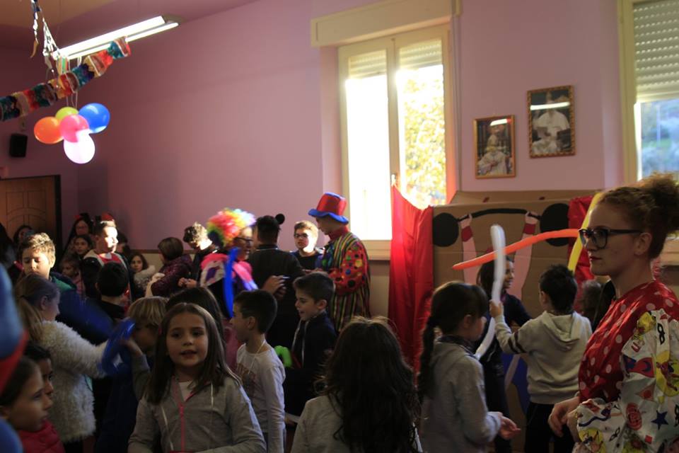 SAN BENEDETTO DEL TRONTO – Sabato 12 Novembre la parrocchia Madonna del Suffragio ha vissuto la Festa del ciao con tutti i suoi ragazzi. Il tema che quest’anno l’acr ha scelto certamente aiuta a fare la festa più bella- CIRCOndati di Gioia. Siamo diventati tutti artisti: pagliacci, acrobati, ballerine. Il lavoro di preparazione come sempre richiede tanta energia e porta con se tanti timori: riuscirà? come sarà il tempo? verranno i ragazzi? sapremo trasmettere la gioia che vorremmo? Poi quel giorno arriva e già di prima mattina noi educatori in parrocchia a preparare, allestire, addobbare e abbellire le stanze . Palloncini,  festoni,  sagome dei giochi, gli abiti da pagliacci, le parrucche, i trucchi non sembrava una parrocchia ma un tendone da circo che ha scelto il suo posto e inizia a preparare tutto per lo spettacolo. Nel pomeriggio sono arrivati i ragazzi che divisi in squadre hanno attraversato con i giochi alcune delle fasi di preparazione di uno spettacolo. Si sono mascherati , sono stati truccati,  hanno imparato a costruire palline e provato a farle volteggiare in aria, hanno percorso un tratto con trampoli ecc. Poi per concludere al meglio i genitori hanno contribuito con dolci e la parrocchia per non perdere la tradizione di San Martino ha offerto castagne a tutti.