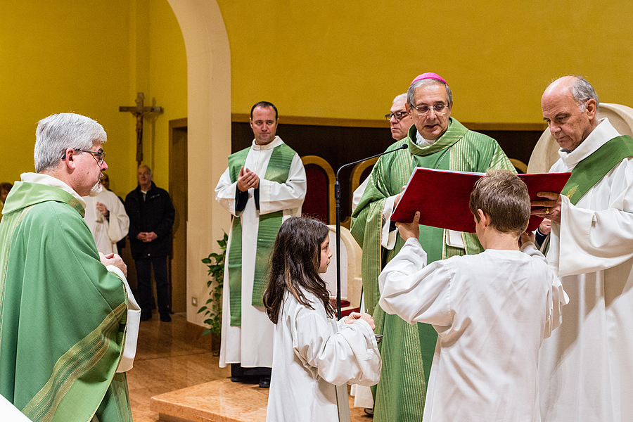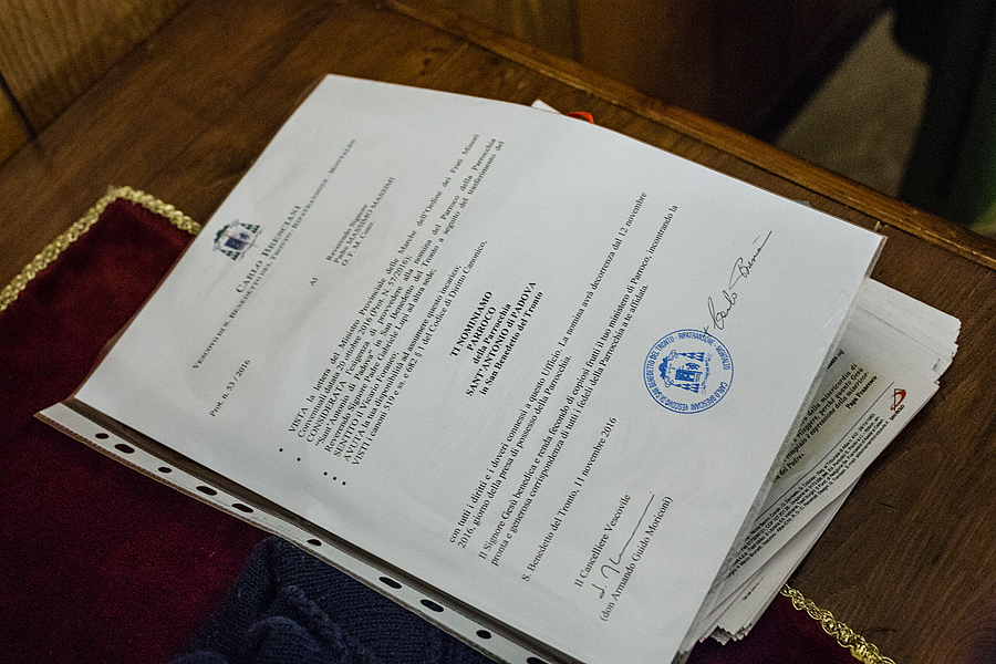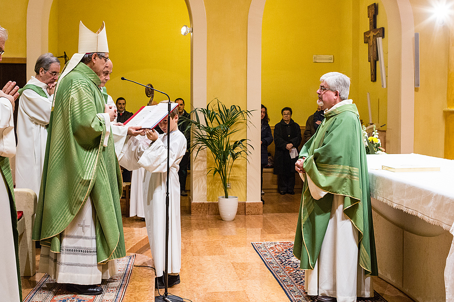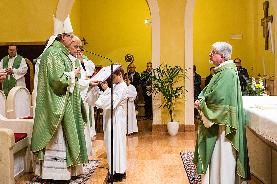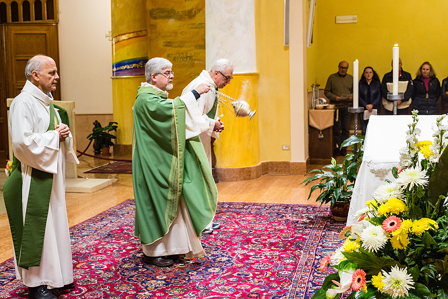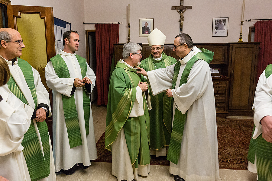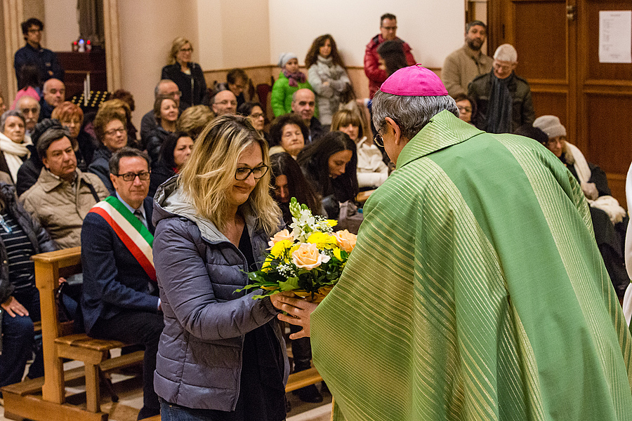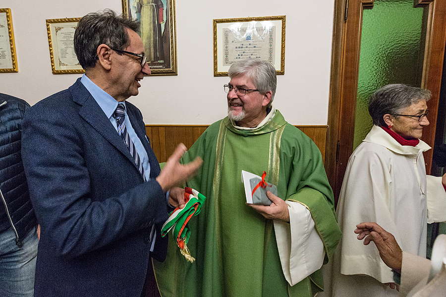 Prima della benedizione finale, a nome di tutta la comunità, è stato consegnato a p. Massimo il dono simbolico dell’occorrente per portare la consolazione ai sofferenti con l’Eucaristia e l’olio dell’unzione; queste le parole a lui rivolte: “All’inizio del tuo mandato, ci piace pensare a te come al buon samaritano, che ha compassione per ogni sofferenza dell’uomo, perché il tuo cuore sia sempre sintonizzato con quello di Dio, che è misericordia.