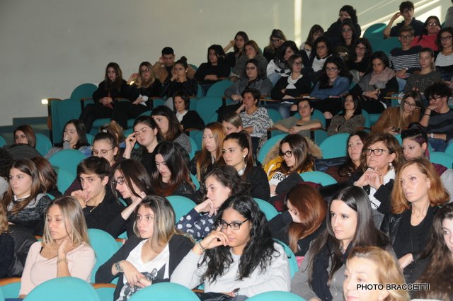 Particolarmente toccante ed originale è stato l’evento di sabato 26, al quale ha presenziato un folto gruppo di studenti di quinta e quarta superiore di varie scuole: non si è trattato di una classica conferenza, ma si è offerta la narrazione di un toccante racconto di un femminicidio. La voce narrante di una improvvisata e sorprendente attrice, la signora Mara Vena, volontaria dell’associazione A.Pro.S.I.R., ha trasportato tutti i presenti nei tormenti di Luca, un giovane che, non tollerando l’abbandono, all’ultimo tentativo di convincere la sua amata a non lasciarlo si macchia di un femminicidio.
