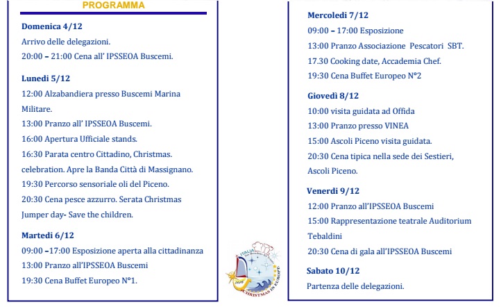 L’evento, organizzato annualmente dall’AEHT, associazione Europea delle Scuole Alberghiere e Turistiche, vedrà la partecipazione di 16 Istituti Alberghieri in rappresentanza di 11 nazioni. All’interno della manifestazione a vocazione culturale, si potranno saggiare le atmosfere del Natale di ogni paese d’Europa attraverso i loro prodotti enogastronomici e le loro tradizioni culturali. I ragazzi avranno modo di confrontarsi con altri studenti e approfondire e potenziare la conoscenza delle lingue straniere, volte a sviluppare nuovi percorsi di miglioramento sociale, culturale e turistico in una dimensione internazionale, promuovendo la mobilità e gli scambi.