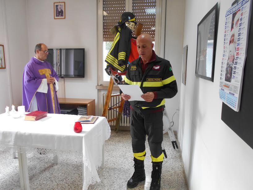 Nell’omelia don Alfredo ha detto: “ Tutti ormai, a causa del terremoto, tramite tv e altro siamo a conoscenza della grande importanza del lavoro dei Vigili del Fuoco.