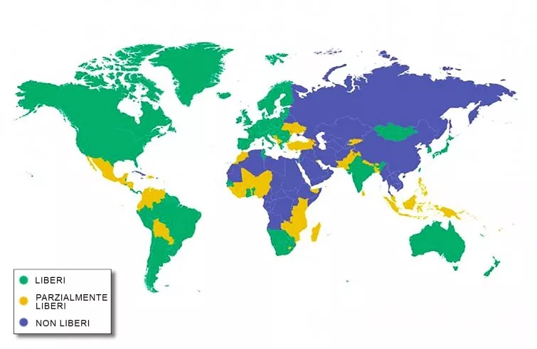 più della metà della popolazione globale vive in Paesi non liberi e parzialmente liberi.