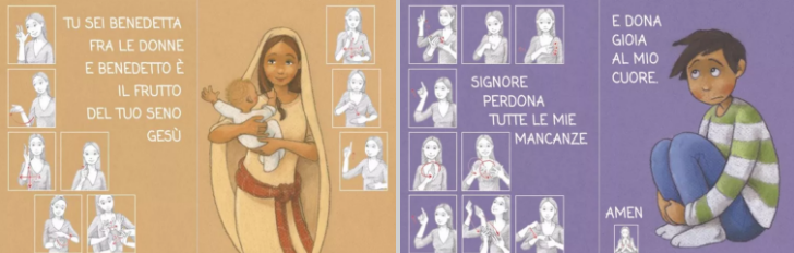 Gloria al Padre, Ave Maria, Padre Nostro, Eterno riposo, Angelo di Dio. È una selezione di invocazioni che hanno il calore della famiglia quella raccolta nel libro “Le mie preghiere in Lis” edito dalla Fondazione Pio Istituto dei Sordi di Milano. Un volume agile e colorato che, attraverso le illustrazioni, restituisce la freschezza delle preghiere recitate in casa ogni giorno prima di mettersi a tavola o di andare a dormire. La pubblicazione, realizzata in collaborazione con la diocesi di Milano, vuole garantire alle persone con disabilità uditiva un percorso educativo e spirituale colmando un vuoto che perdura da troppo tempo. Non c’è traccia, infatti, di libri di preghiera nella Lingua dei segni (Lis) che siano d’aiuto per i genitori con un figlio sordo o per i catechisti alle prese con ragazzi con difficoltà di udito. Affiancato al testo in italiano, infatti, è proposta la traduzione delle preghiere nella Lingua dei segni: “Fino al secolo scorso – scrive la curatrice Marisa Bonomi – gli educatori pensavano che la persona non udente potesse giungere ai concetti astratti della religione solo attraverso l’oralismo. Noi crediamo che anche la Lingua dei segni italiana, se condivisa dagli adulti che si occupano del bambino, possa essere un aiuto importante nel cammino della formazione della coscienza e dell’educazione religiosa”.