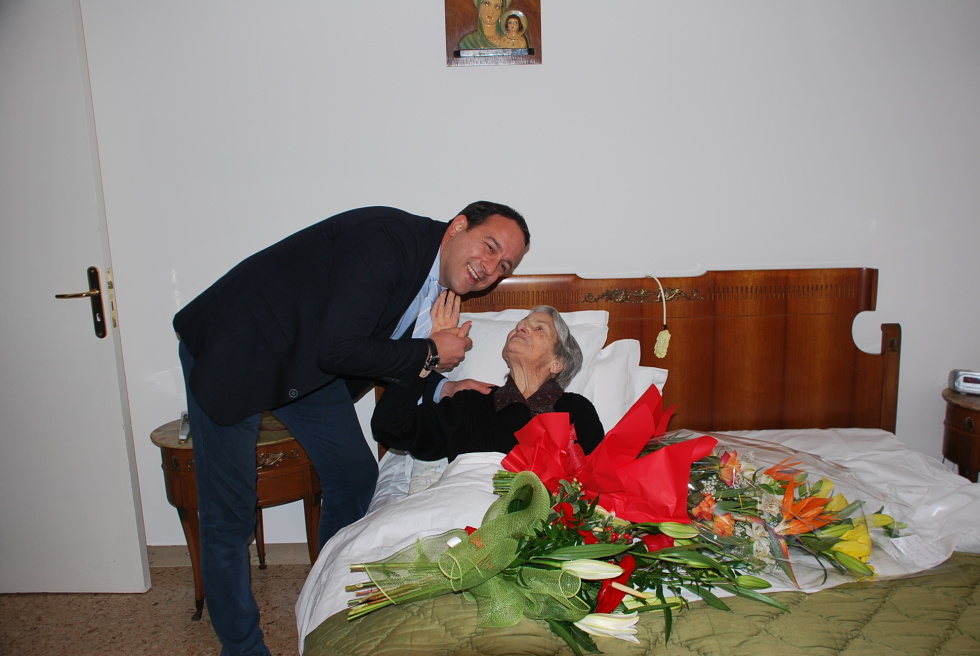 SAN BENEDETTO DEL TRONTO – E’ stato l’assessore Andrea Traini a portare il tradizionale mazzo di fiori beneaugurale alla signora Teresa Pieragostini che il 14 dicembre ha tagliato l’importante traguardo dei 100 anni.