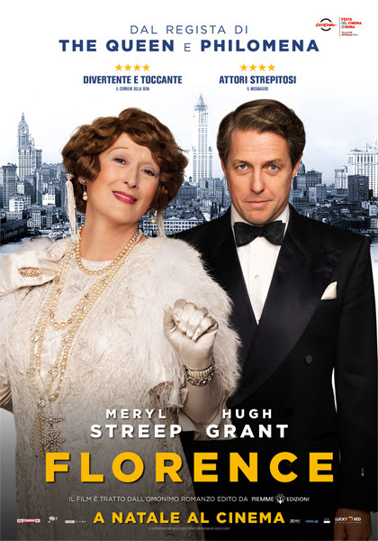 Florence di Stephen Frears, con Meryl Streep, Hugh Grant, Simon Helberg, Rebecca Ferguson, Nina Arianda. Il film è candidato a quattro Golden Globe 2017.
