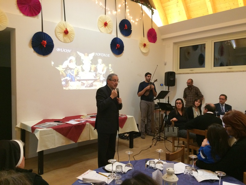 Presente il Vescovo Mons. Carlo Bresciani, che ha offerto un pensiero sul Natale e sul “progetto”, riportando inizialmente l’esempio di Maria e Giuseppe, che abbandonano un progetto buono per entrare in uno molto più grande. La famiglia è un progetto di apertura a colui che è diverso da sé, che propone l’ apertura a qualcosa di più grande in cui si realizza la vita. Una prospettiva individualistica invece non mette l’altro nel proprio progetto; più la vita si chiude su prospettive individuali, più la vita si spegne sia spiritualmente che demograficamente e l’Occidente sta pagando demograficamente le sue scelte individualistiche, scelte anticristiane.Quanto più siamo capaci di aprirci all’altro, tanto più siamo capaci di accogliere Dio: questo l’augurio di Mons. Bresciani, con l’auspicio che si realizzi nella famiglia.