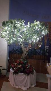 A fare da cornice uno sfondo “simbolico” composto da una culla fatta interamente di pane perché il pane ci ricorda Betlemme (casa di pane) e donata da Enrico Ciarrocchi; la radice di ulivo per aiutare a riscoprire le nostre radici, la nostra tradizione e la bellezza di fare il presepe in famiglia. Poi, il momento dell’adorazione Eucaristica, posto nel presepe tra Giuseppe e Maria per dare un forte segno dell’incarnazione.