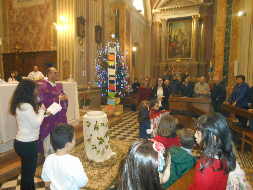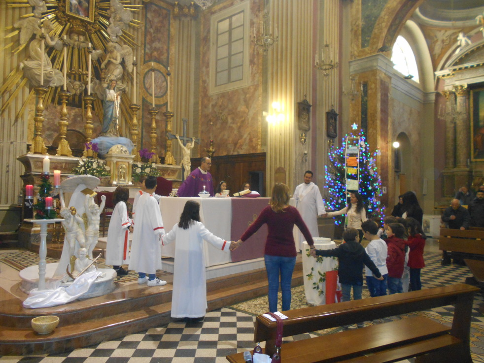 ACQUAVIVA PICENA – Ad Acquaviva Picena domenica 18 dicembre alla Celebrazione Eucaristica delle 9:30 sono stati presentati alla comunità i bambini che quest’anno hanno cominciato il cammino ACR e che con le loro educatrici Patrizia, Camilla e Nicodema si incontrano tutti i sabato pomeriggio alla Casa del Catechismo. I bambini sono circa 30 e di questi non tutti frequentano il primo anno della scuola elementare, alcuni frequentano l’ultimo anno della scuola dell’infanzia. I bambini, anche se ancora piccoli, hanno animato con i loro genitori e le loro educatrici la santa Messa; cominciando con una letterina di presentazione, passando all’Atto Penitenziale, Letture, preghiera dei fedeli e offertorio, dove hanno portato all’altare il Calendario dell’Avvento da loro stessi realizzato: “Il Natale è per tutti, Gesù Bambino nasce per ogni uomo, non importa se esso sia ricco o povero, bello o brutto, sano o malato. Gesù è lì nella Grotta del Primo Natale dove attende tutti coloro che si rivolgono a Lui”. Al termine della Celebrazione i bambini hanno intonato il canto “Tu scendi dalle Stelle”.