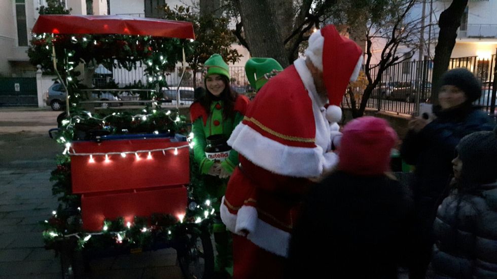 Il pomeriggio si è aperto con l’arrivo di Babbo Natale su un risciò tutto illuminato e scortato da una pattuglia della Polizia Locale. Con grande disponibilità e pazienza, aiutato dallo staff della Protezione Civile, ha consegnato doni e concesso foto e selfie ai tanti bimbi presenti.