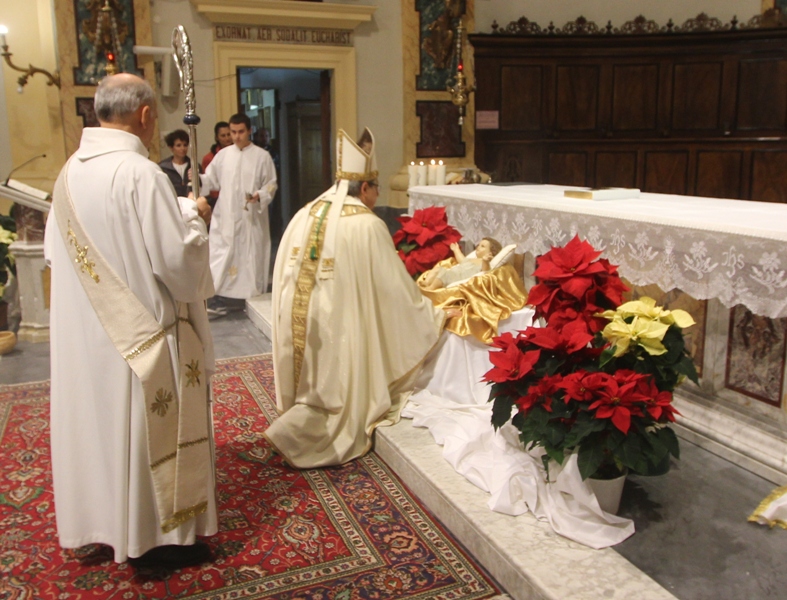Carissimi, questa notte santa ci indica dove anche noi possiamo trovare la luce per la nostra vita, la luce di Dio. Impariamo dall’amore di Maria e Giuseppe, impariamo ad amare Dio come loro: questo è possibile a ciascuno di noi. Non c’è bisogno di essere ricchi, c’è solo bisogno di capire che è solo l’amore donato che ci salva; è solo l’amore di Dio donato a noi, e da noi accolto con fede, che salva la vita dall’oscurità del male e delle tenebre.