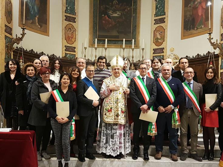 Poi il Vescovo, rivolgendosi ai politici, a cui poi al termine della celebrazione ha consegnato il messaggio di pace in forma cartacea, ha ricordato loro che “una sana politica tende ad includere, a generare maggior uguaglianza e rispetto delle diversità, a identificare procedure contro l’esclusione sociale dei meno avvantaggiati e dei più bisognosi, accettando la fatica, a volte davvero grande, della ricerca incessante di un dialogo che riconcili le opposte o diverse progettualità.(…) E’ lo stile non violento della vita di Gesù che riconcilia i popoli; è lo stile della maternità di Maria che custodisce e protegge la vita; è lo stile della vita di Giuseppe che custodisce la dignità della donna anche nella sua maternità. (…) Impegniamoci, con la preghiera e con l’azione, a diventare persone che hanno bandito dal loro cuore, dalle loro parole e dai loro gesti la violenza, e a costruire società non violente, che si prendono cura della casa comune. ‘Niente è impossibile se ci rivolgiamo a Dio nella preghiera. Tutti possono essere artigiani di pace’”.