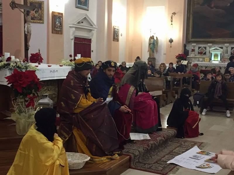 Alle ore 15.00 dopo esser giunti a cavallo nella piazza antistante la Chiesa “I Re Magi” hanno fatto ingresso nella Chiesa di Grottammare e dopo aver ascoltato la proclamazione del Vangelo da parte del Vice Parroco Don Guido Coccia, i Sapienti d’Oriente hanno illustrato a tutti i bambini il significato di questa importante visita.