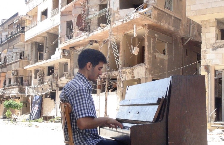 Quando viveva a Yarmouk, campo profughi palestinese a sud di Damasco, Aeham Ahmad rispondeva ai sibili aspri delle bombe con le note dolci del pianoforte, che trasportava su un carretto lungo le strade disseminate di macerie. E si metteva a suonare proprio lì, in mezzo agli edifici sventrati, per lanciare un messaggio di speranza: “La musica dà conforto, coraggio e gioia anche dove terrore e angoscia oscurano il futuro” spiega. Prima la guerra civile, poi l’Isis, la Siria non trova pace dal 2011 e Ahmad – nato a Damasco nel 1988, musulmano – è diventato il simbolo della sua terra, oltre che una leggenda. Celebre in tutto il mondo come “il pianista di Yarmouk”, è rifugiato in Germania da circa un anno e mezzo; appena arrivato, ha ritirato a Bonn il Premio Beethoven per l’impegno a favore di “diritti umani, pace, integrazione e lotta alla fame” e ha cominciato a tenere concerti in giro per l’Europa (il tour italiano parte il 6 gennaio da Locorotondo, Bari).