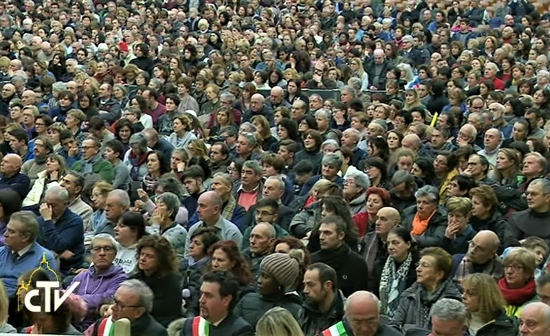 Si tratta di un breve estratto della riflessione pronunciata da Papa Francesco, durante l’Udienza del 5 gennaio in Vaticano ha incontrato le popolazioni colpite dal sisma del 24 agosto, del 26 e del 30 ottobre. Nonostante le previsioni meteorologiche avverse, le Marche hanno partecipato con numerosi pullman, anche la nostra diocesi con una nutrita delegazione di circa 250 persone. Infatti sono partiti 5 pullman dalla Riviera delle Palme per incontrare il Santo Padre.