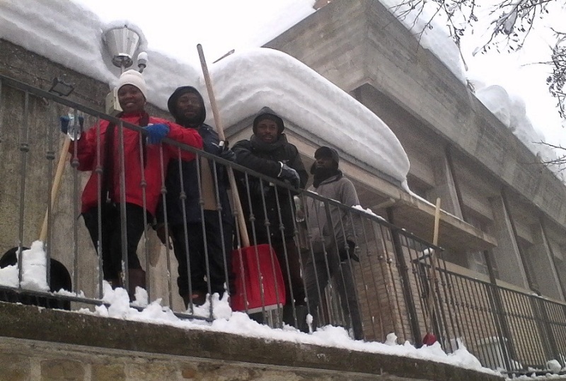Essi hanno dato una mano per ripulire le strade del paese bloccato dalla neve. I ragazzi provenienti dalla Nigeria, dal Camerun e dalla Costa d’Avorio che per la prima volta hanno visto la neve, hanno voluto dare il loro contributo per aiutare la comunità di Montelparo che li ha accolti!).