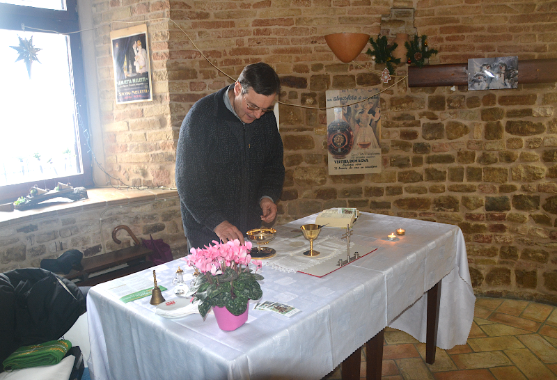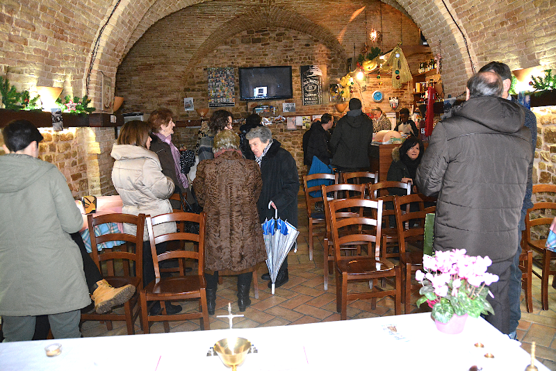 Come fare per poter celebrare la Santa Messa in onore del Santo Antonio Abate? Un’illuminata intuizione del Priore di San Michele Arcangelo ha fatto si che la Santa Messa, per questa importantissima ricorrenza storica (che ha visto arrivare a Montelparo migliaia e migliaia di appassionati del famoso baccalà), fosse stata organizzata e celebrata addirittura all’interno del locale (sia pure minuscolo) Circolo-Bar IL MURELLO! I gestori, comprendendo perfettamente le obiettive difficoltà della parrocchia, si sono dimostrati disponibilissimi! Questo locale, d’altronde, si trova, niente meno che, in quella che era la Cripta della sovrastante Chiesa di San Gregorio Magno.