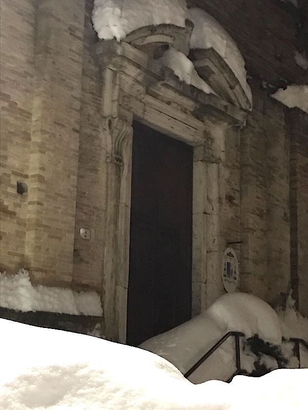 Tutto questo esposto, però, c’è da dire che l’emergenza dovuta al terremoto dell’Agosto e dell’Ottobre scorso, ha tolto ai fedeli, momentaneamente, l’uso di tutte le splendide chiese montelparesi! La neve ha ricoperto, poi, di una coltre impenetrabile anche quella dei Santi Pietro e Silvestro che, concessa in uso dal Comune alla parrocchia, non è stata potuta utilizzare!