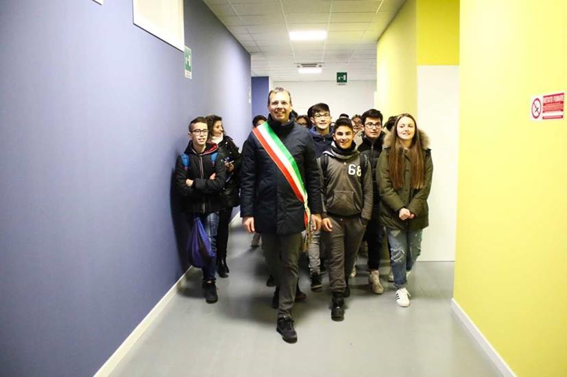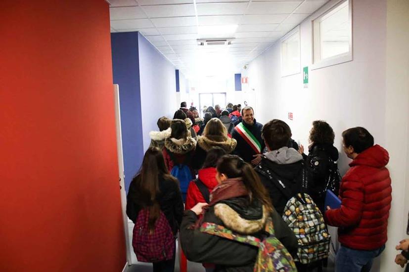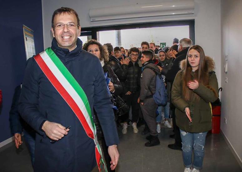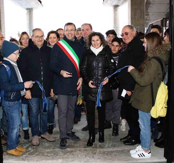 SANT’EGIDIO ALLA VIBRATA – “Quando l’unico obiettivo è il bene comune e si fa squadra si fanno cose impossibili”. Questo il commento del sindaco di Sant’Egidio alla Vibrata nel giorno dell’inaugurazione della nuova scuola media presso il Centro Fieristico sito in Paolantonio, coincisa con la generale ripresa di tutte le attività didattiche, dopo giorni di chiusura forzata causa maltempo. Al sindaco il compito di tagliare il nastro, affiancato da alcuni membri dell’amministrazione comunale e dal parroco di Sant’Egidio alla Vibrata, don Luigino Scarponi, davanti ad una schiera entusiasta di alunni.
