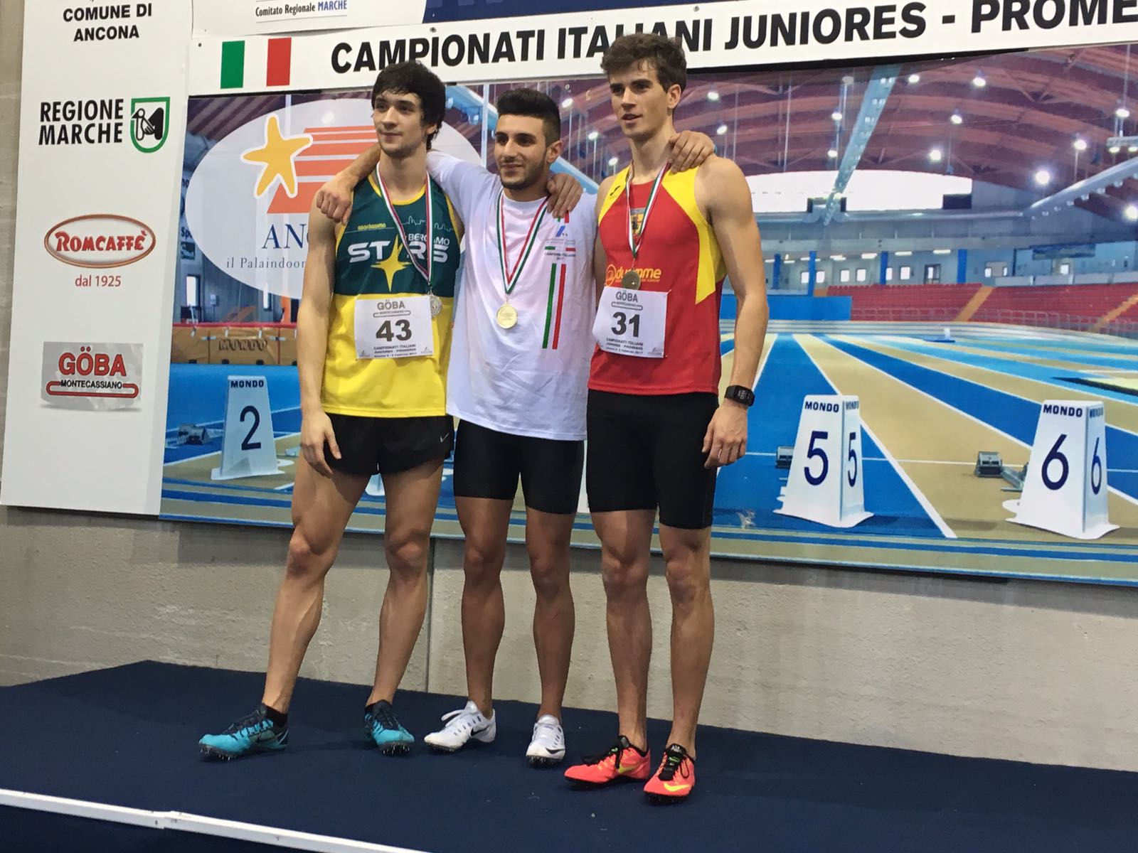 Andrea si laurea nuovo campione Italiano dei 60 metri ad ostacoli con 8”25 , migliorandosi nuovamente e generando la commozione del suo tecnico Teresa Morelli, del compagno di mille allenamenti e suo mentore John Mark Nalocca , del Presidente Vinicio Ruggieri e di tutti coloro che sono venuti ad Ancona per sostenerlo.
