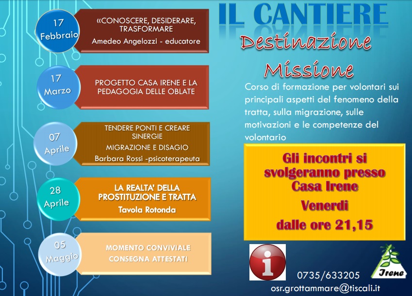 DIOCESI – Le Suore Oblate del SS Redentore organizzano un corso di formazione per volontari “Il cantiere: Destinazione Missione”.