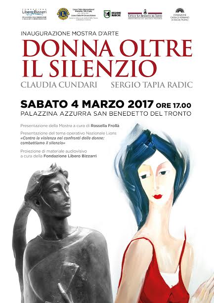 L’ iniziativa dei Lions prende vita con la mostra d’ arte organizzata grazie alla sensibile e generosa collaborazione della pittrice Claudia Cundari e del maestro scultore Sergio Tapia Radic. L’universo femminile è raccontato e sublimato dalla loro opere. È una mostra che guarda al positivo.