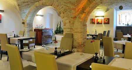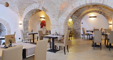 Nel ristorante poi, con i suoi soffitti a volte del XV secolo o fuori, nel cortile, con la vista dei monti accoglienti, si possono gustare cene saporitissime e particolari! Il ristorante ha anche un forno a legna, che sforna un’eccellente pizza, e una buona scelta di vini marchigiani che fanno da complemento sia ai piatti di carne, sia di pesce.