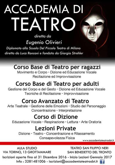Salve, ho 28 anni e vorrei iscrivermi ad un corso base per adulti di teatro o dizione , sono di San Benedetto, come posso fare? Grazie Francesca