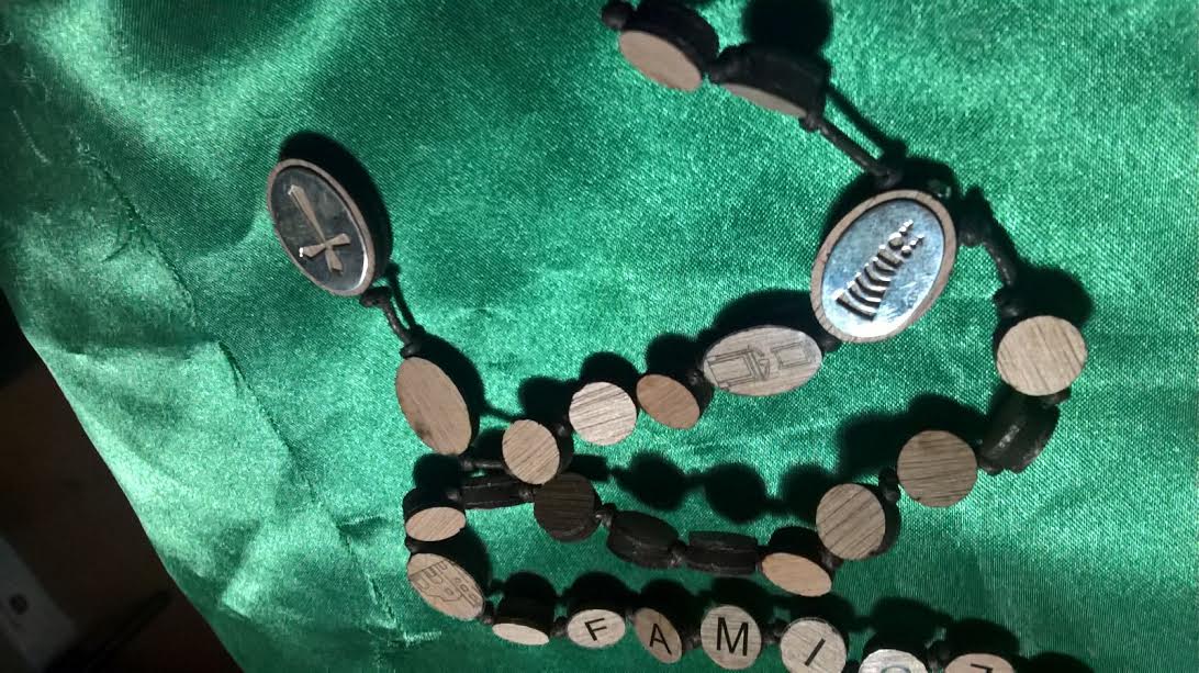 Il progetto nasce dall’idea di unire la preghiera con l’esperienza vissuta del cammino lauretano. Le parole chiave sono state: “spiritualità, territorio, artigianato, unicità”- commentano Monica, Valeria e Elena – ci siamo immedesimate nel pellegrino e abbiamo immaginato di percorrere il cammino passo dopo passo costruendoci il nostro rosario” di fatti il kit propone: una corda di cotone cerato, 53 grani piatti di legno, dove con una semplice bic si potrà incidere la parola che più ha rappresentato quel tratto di strada, 6 ovali sui quali andranno incollate le tappe, i luoghi del territorio percorsi durante il cammino in modo da non dimenticarci mai delle bellezze architettoniche, paesaggistiche che la nostra terra ci offre ed infine due ovali dove è presente la Croce, l’effige della Madonna di Loreto e lo stemma dei cammini lauretani.