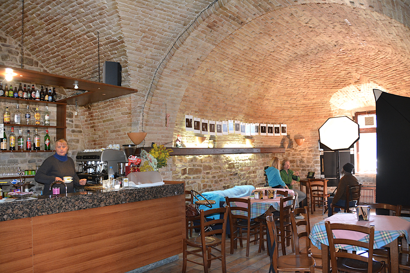 All’interno di questo Bar del simpaticissimo Nicola Michetti (qui meglio conosciuto come Nico’ de Cicchitellu!) che lo conduce insieme alla moglie Martina e alla figlia Valentina (che per l’occasione funge anche da interprete), Alex ha già istallato una mostra dei primi scatti fatti. Simpatico è anche il fatto che una copia di ogni foto egli la dona al soggetto fotografato: questo equivale a ricevere una vera e propria opera d’arte con le proprie sembianze!