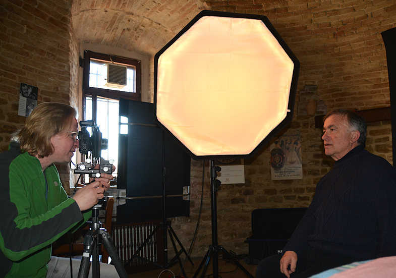 Da qualche giorno Alex Vreeman opera con la sua attrezzatura all’interno del Bar “IL MURELLO” di Montelparo. Qui immortala, con le sue grandi capacità, i visi più espressivi e intriganti della gente di questo paesino dell’entroterra fermano! E si che, appena ti affacci fuori dal locale, si spalancano panorami di bellezza mozzafiato! Egli spiega, però, che speciale è non solo la natura, i colori, i panorami sconfinati e luminosi, ma anche e soprattutto i volti della gente di paese! E qui, a Montelparo, afferma di aver trovato in tutti quell’espressione giusta, che lo soddisfa, accompagnata com’è da una collaborazione e da una gentilezza senza pari!