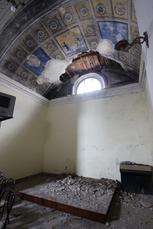 Da ottobre 2016 infatti, vista l’inagibilità delle due chiese cittadine, le celebrazioni si svolgono presso la sala messa disposizione dall’amministrazione comunale e vista inoltre la pericolosità della torre della chiesa parrocchiale era stato sospeso il suono delle campane.