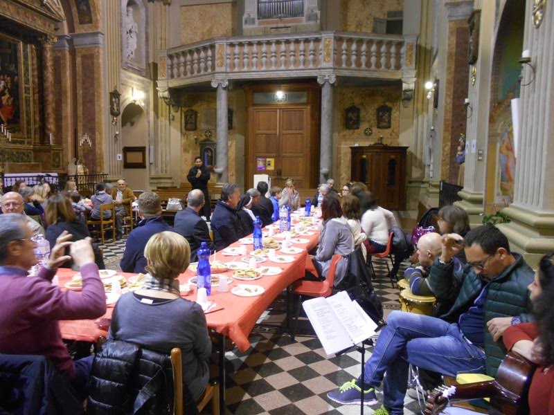 Una cena comunitaria all’interno della chiesa di san Niccolò è stata scelta per far meglio comprendere il tema “Perseveranti nella comunione”. Il gruppo del Rinnovamento nello Spirito ha deciso di inserire alcuni canti all’interno della serata e anche una testimonianza che ha messo in risalto il valore della vita, della fede e della solidarietà. Camilla nella sua riflessione ha raccontato un particolare simpatico accadutole durante la sua vita.
