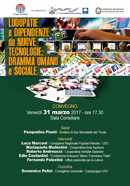 SAN BENEDETTO DEL TRONTO – Presso la sala consiliare del Comune di San Benedetto del Tronto si terrà Venerdì 31 marzo alle ore 17,30 un interessante tavola rotonda su un problema di forte attualità come quello delle ludopatie, tema sul quale il giornale “Avvenire” sta facendo da parecchi mesi una battaglia molto forte.