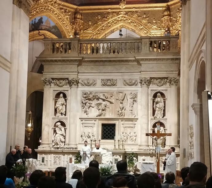 A ciascuno dei presenti è stato chiesto poi di esprimere su un biglietto un pensiero o una richiesta in merito a quanto ci si aspetta dalla Chiesa dal punto di vista pastorale. Questo è stato il modo di inaugurare un’apposita cassetta che permetterà durante l’anno di depositare riflessioni, suggerimenti e preghiere che porteranno un contributo al lavoro del Sinodo dei Vescovi del 2018 sui giovani, la fede ed il discernimento vocazionale. Papa Francesco di recente ha infatti chiesto a questi presuli di diventare collaboratori della gioia dei propri ragazzi, e la pastorale giovanile delle Marche ha pensato di rispondere a tale invito con questo primo strumento di ascolto. Il pontefice alcuni giorni fa ha anche parlato di San Giuseppe come uomo capace di custodire e portare avanti i sogni di Dio. Proprio ricollegandosi a questo pensiero si è pensato di designare la cappella della Basilica lauretana, dedicata a questo santo, come luogo di preghiera dei giovani e di raccolta delle loro proposte per l’intero anno.