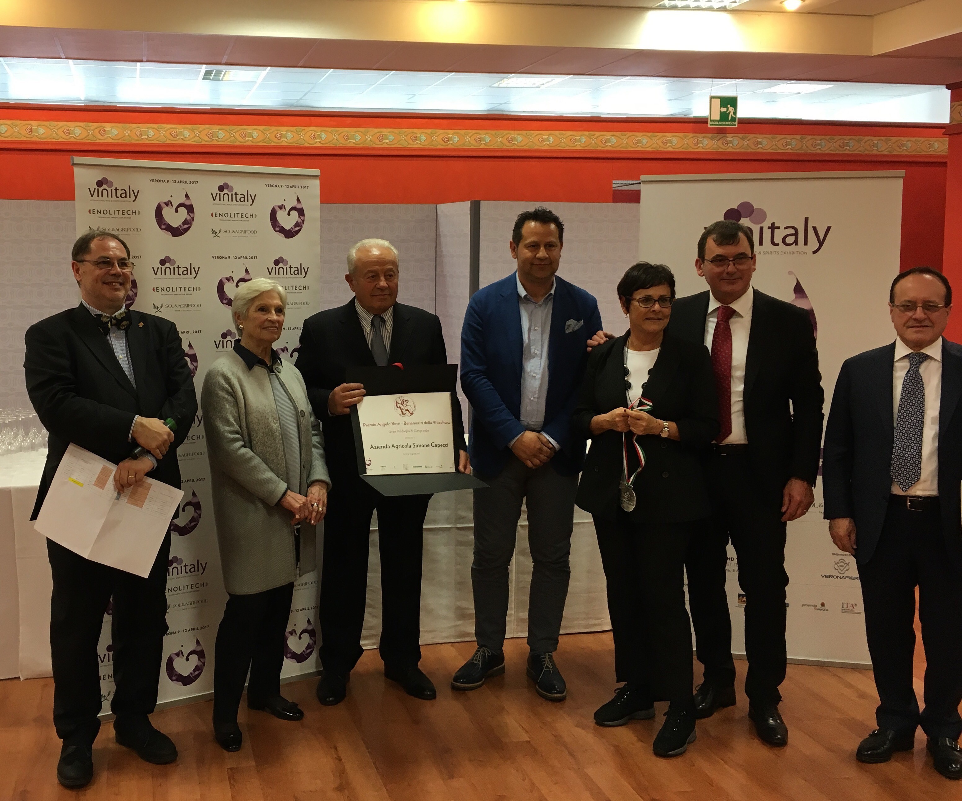 MARCHE – L’azienda vinicola “Poderi Capecci San Savino” di Ripatransone (AP) è stata premiata con il Cangrande, prestigioso riconoscimento che viene assegnato ai “benemeriti della vitivinicoltura italiana”. Il premio è stato conferito, a Verona, nel corso della prima giornata del Vinitaly, il Salone internazionale del vino e dei distillati che richiama operatori da tutto il mondo. Il premio è stato ritirato da Simone Capecci, accompagnato sul palco dalla vice presidente della Regione, Anna Casini. I “benemeriti” vengono segnalati dagli assessorati regionali all’Agricoltura tra coloro che, con la propria attività professionale, contribuiscano al progresso qualitativo della produzione enologica nazionale. “È stata premiata un’azienda che ha fatto della qualità e dell’innovazioni i punti di forza della propria attività enologica – ha commentato Casini – Un’impresa storica del territorio, cresciuta grazie al lavoro appassionato e competente di generazioni di agricoltori, che hanno contribuito all’affermazione di un vino autoctono del Piceno, come il Pecorino, in un’eccellenza marchigiana”. Una storia che è nata “nel cuore delle Marche”, legando la fertilità del terreno e le condizioni climatiche ideali per la produzione vinicola, alle tradizioni del territorio. L’azienda, oggi, con una costante attenzione alla coltivazione biologica, guarda alla ricerca e all’innovazione per migliorare e potenziare vitigni autoctoni come il Pecorino, la Passerina, il Sangiovese e il Montepulciano.
