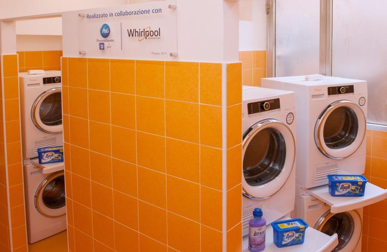 La Lavanderia è collocata all’interno del “Centro Genti di Pace” della Comunità Sant’Egidio, presso l’antico complesso ospedaliero del San Gallicano, in Via San Gallicano 25. Sarà proprio questa associazione di volontariato a gestire la “Lavanderia del Papa”, insieme agli altri servizi – già attivi da più di dieci anni – di accoglienza e assistenza alle persone più povere, e ai quali si aggiungeranno nei prossimi mesi anche quelli delle docce, della barberia, di un guardaroba, degli ambulatori medici e della distribuzione di generi di prima necessità. Nei locali adibiti a questo servizio sono presenti sei lavatrici e sei asciugatrici di ultima generazione, con relativi ferri da stiro: tutto questo è stato donato dalla multinazionale Whirlpool Corporation. A condividere e coordinare questo progetto è stato il gruppo Procter & Gamble, che già da due anni dona rasoi e schiuma da barba Gillette alla “barberia per i poveri” del Colonnato di San Pietro, e che ha assicurato la fornitura completa e gratuita di detergenti Dash e Lenor per il bucato.