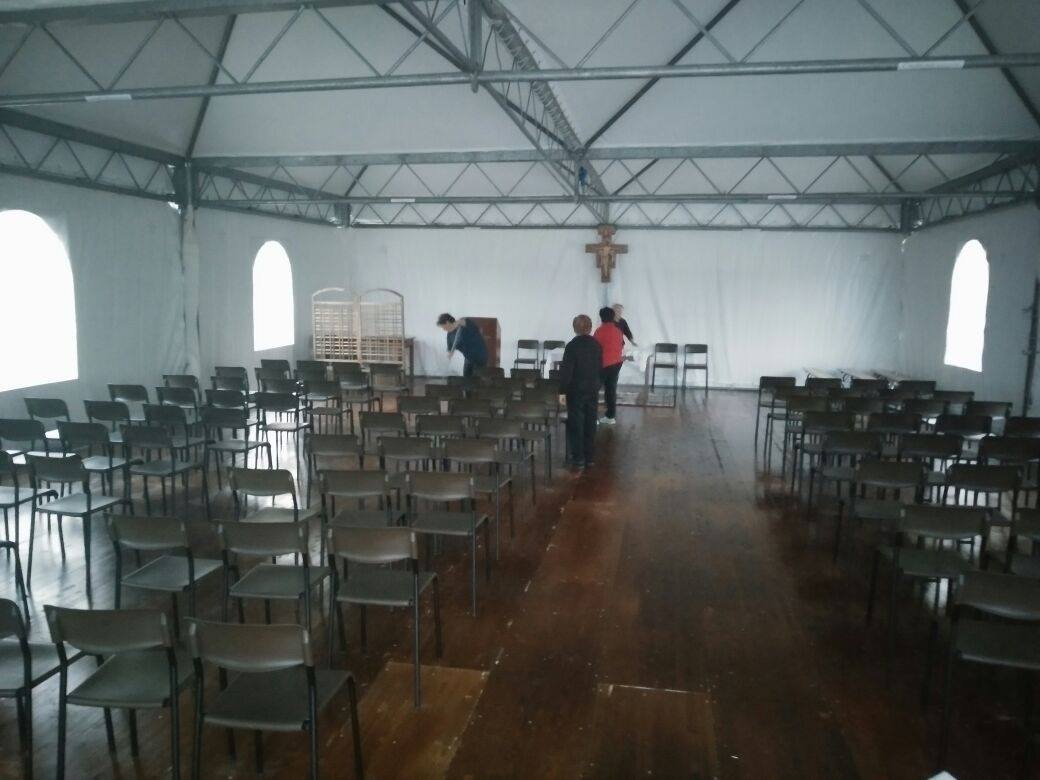 Un luogo di calore, un primo spazio per riunire la comunità, le persone rimaste nel territorio, i volontari, i lavoratori impegnati nella zona rossa. Infatti, domenica 16 Aprile alle ore 8.30, con la prima celebrazione di Pasqua verrà  inaugurata la struttura, fatta pervenire grazie all’intervento della Caritas Diocesana. La comunità di Cossignano, colpita dal sisma di ottobre si prepara a vivere la Santa Pasqua nella tensostruttura allestita appositamente per la comunità guidata da Don Nicola Spinozzi.