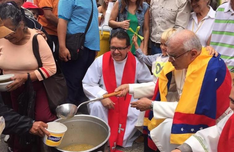 ognuno porta qualcosa. Questa iniziativa ha avuto molto successo perché crea un grande senso di riconciliazione e di solidarietà. L’iniziativa si sta estendendo in tutto il Paese. È un modo molto concreto per superare la fame, perché c’è tantissima gente che non ha nulla da mangiare. In questo modo si può mangiare insieme agli altri. L’altra azione è di accompagnamento del popolo che protesta contro la situazione politica creata dal governo, come il disconoscimento dell’Assemblea nazionale e il dominio del Tribunale supremo su tutti gli altri poteri, eccetera. Le decisioni del Tribunale supremo sono totalmente anticostituzionali e illegali e per questo ci sono molte manifestazioni, non solo a Caracas ma in tutto il Paese. La Chiesa sta accompagnando il popolo che soffre di più, invitandolo a partecipare sempre in maniera pacifica e legale.
