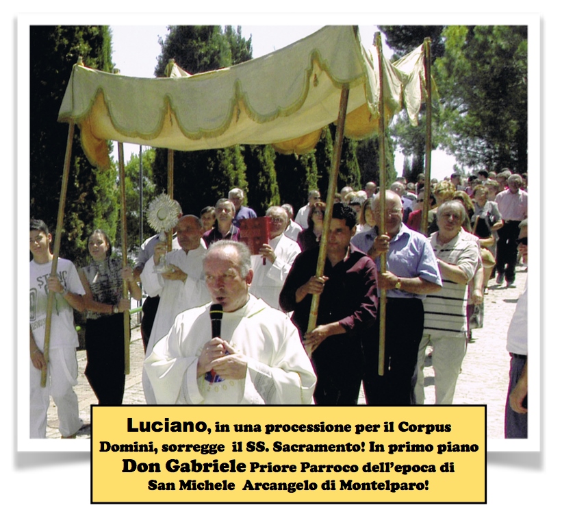 Altra cosa importante e particolare da ricordare è che Luciano fu il primo montelparese a ricevere l’incarico di “Ministro Straordinario della Santa Comunione” che fu istituito dal 29 gennaio 1973! Ed è molto indicativo che proprio Luciano sia stato scelto anche per svolgere questa delicata mansione che deve tener conto di una buona formazione cristiana, di una piena comunione ecclesiale, di un’assidua pietà eucaristica, di un’effettiva capacità d’incontro, dialogo, servizio con i malati e gli anziani, ecc.!