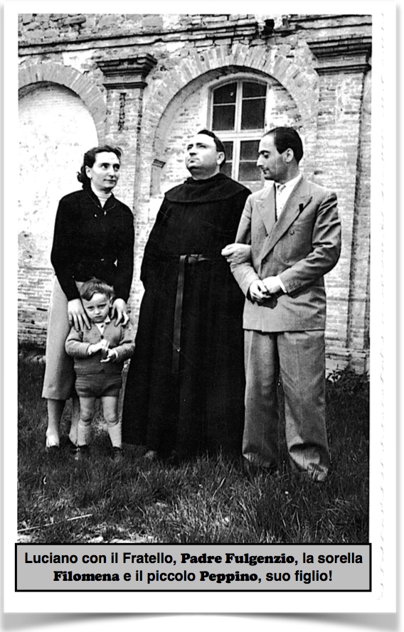 Ci piace precisare che tutti i montelparesi lo chiamano comunemente “Luciano de Pirretto”! Anche a Montelparo, infatti, ogni casata possiede un soprannome che racchiude la storia di quella famiglia! Era chiamato “Pirretto” (piccolo Pirro!) il babbo di Luciano, Giuseppe Minnucci, che ovviamente ebbe grande peso nella storia del figlio.