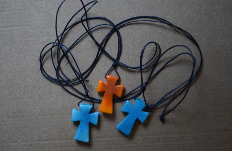 I semi di tagua (frutti di una palma, la Phytelephas macrocarpa che cresce nella foresta pluviale del Sud America) vengono raccolti ed essiccati e quindi tagliati a fette. “Ci vuole tanta precisione e attenzione – spiega don Walter – per intagliare le croci. Viene usato una sorta di seghetto. Anche il minimo errore può rovinare in maniera irreparabile il pezzo”.
