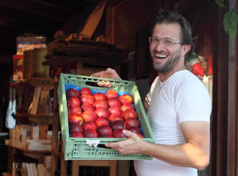 Colore, odore e sapore della frutta che egli coltiva insieme ai suoi genitori!