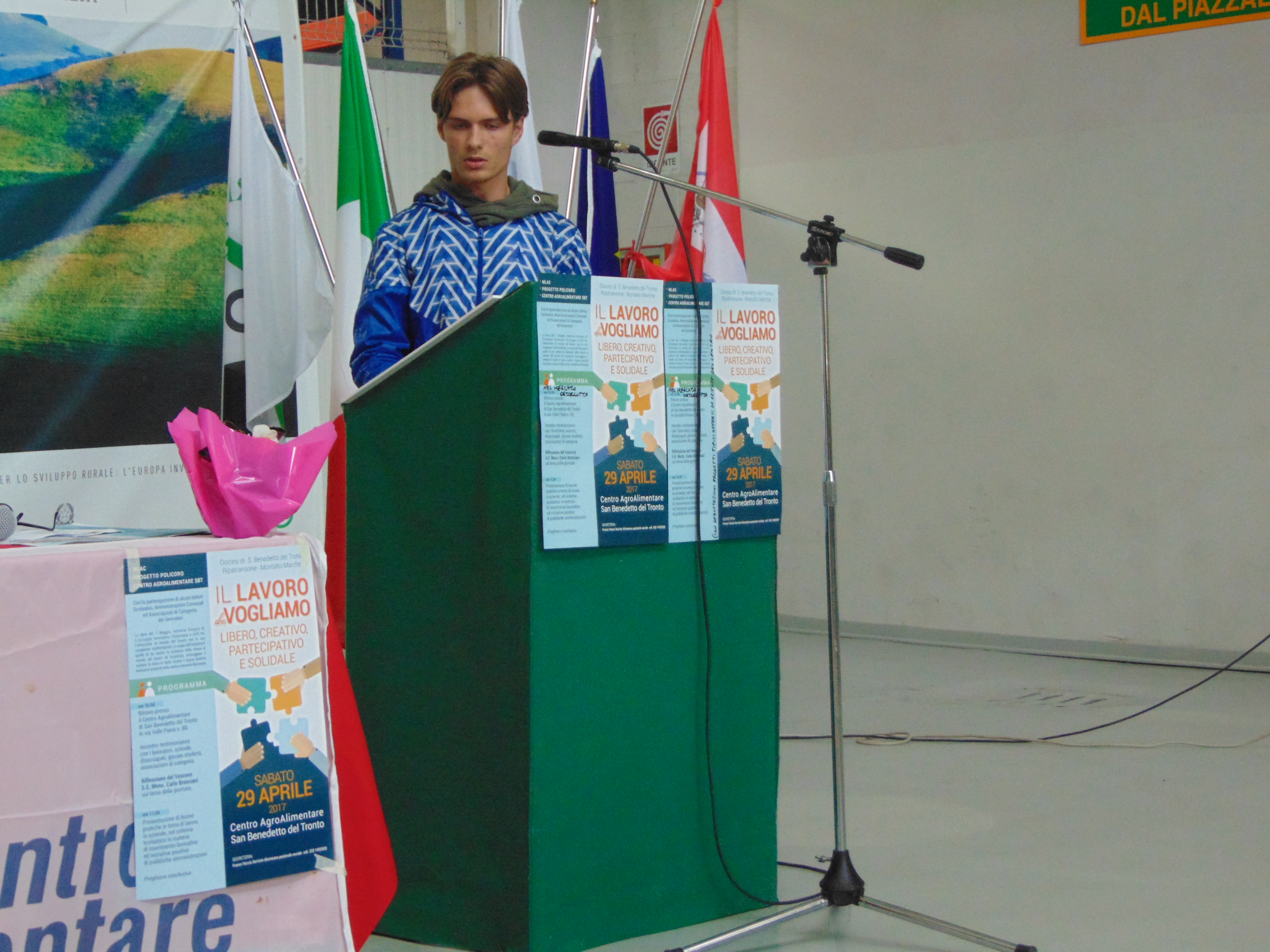 Conseguentemente, si è parlato del ruolo e delle funzioni svolte dalle associazioni di categoria per sviluppare il lavoro e per agevolare l’ingresso nel mondo del lavoro. Come esperienza viene di nuovo citato il terremoto con il Presidente provinciale Luigi Passaretti della CNA di Ascoli Piceno, che ha elencato i disagi lavorativi riscontrati ad Arquata del Tronto. “Ad Arquata il 24 agosto si è fermato il mondo. La conseguenza è stata anche la distruzione della socialità e, come associazione, ci siamo impegnati in tutti i modi possibili per essere vicini a queste popolazioni e abbiamo fatto una proposta: riportare in vita le attività di quei luoghi. Ci sono già delle casette che possono accogliere i residenti, ma servono piccoli ristoranti, piccole attività commerciali e noi abbiamo disegnato un progetto che consiste nel riportare poche attività in un perimetro di 2.000 m² circa, dove esse possano ricominciare a lavorare. Ma l’impegno della CNA è anche verso i giovani e l’orientamento nel mondo del lavoro con tanti metodi. L’uomo deve ritornare ad essere saggio nel sentire questi ambienti e solo attraverso la partecipazione, la perspicacia e l’intelligenza riusciamo ad avere un mondo migliore. Bisogna ricostruire la socialità, la famiglia, il nostro tessuto sociale ed imprenditoriale e dalla passione di questi luoghi può nascere il nostro futuro”.