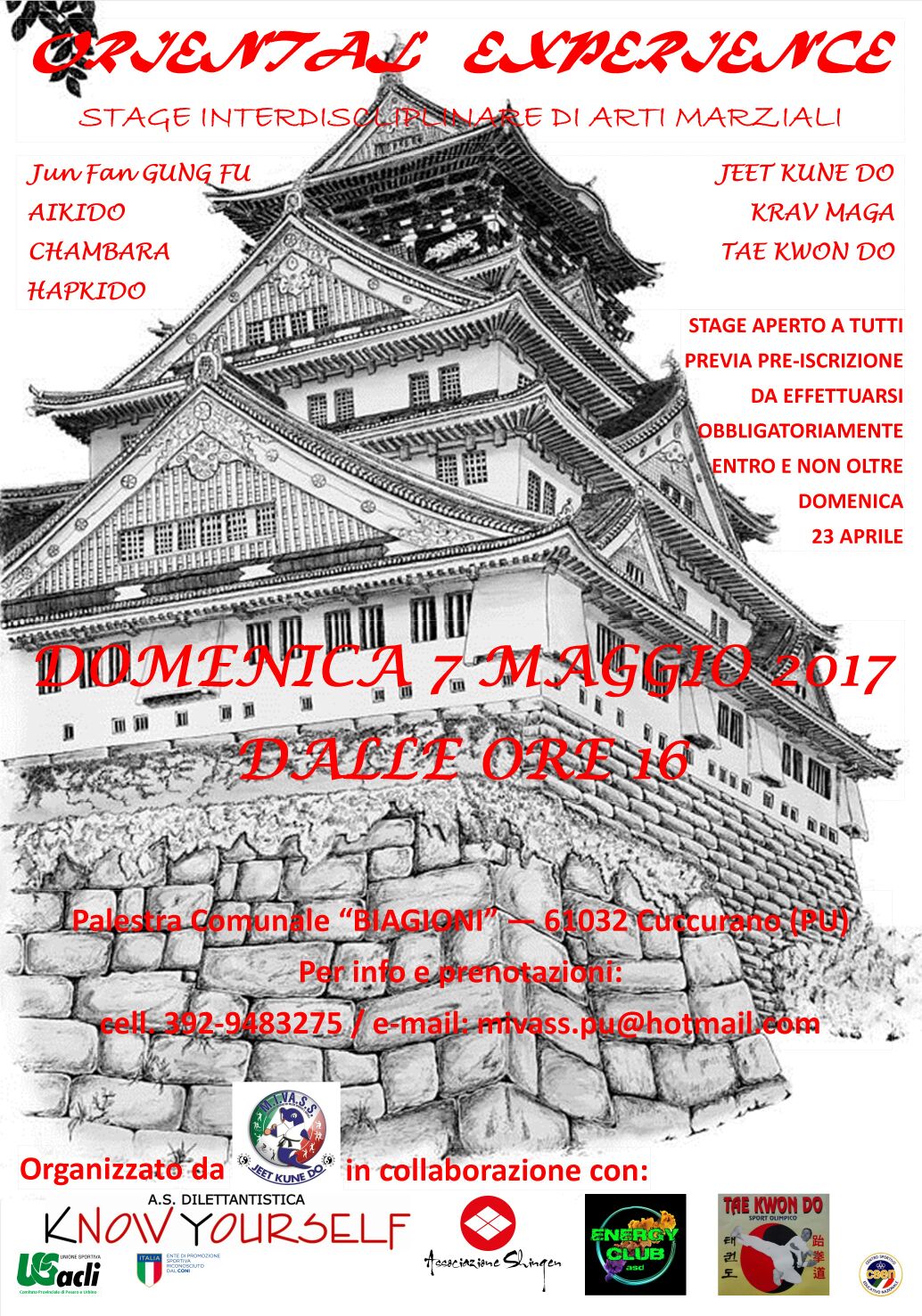 A Fano, per la provincia di Pesaro/Urbino, domenica 7 maggio dalle ore 16 ci sarà uno stage interdisciplinare di arti marziali presso la palestra comunale “Biagioni” di Cuccurano.