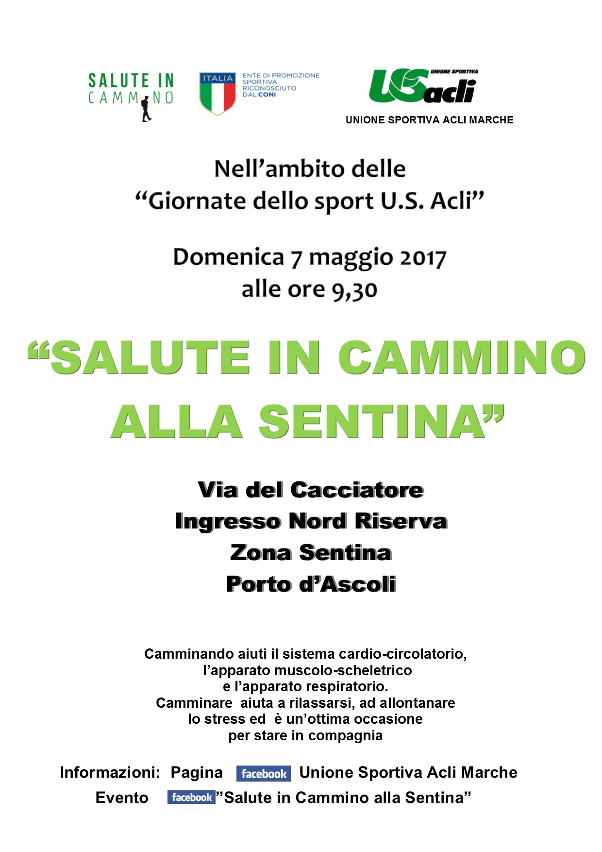 Domenica 7 maggio, a partire dalle ore 9,30, è infatti in programma “Salute in cammino alla Sentina”, una camminata della durata di circa un paio d’ore all’interno della Riserva naturale della Sentina a San Benedetto del Tronto. La partenza avrà luogo da via del cacciatore.
