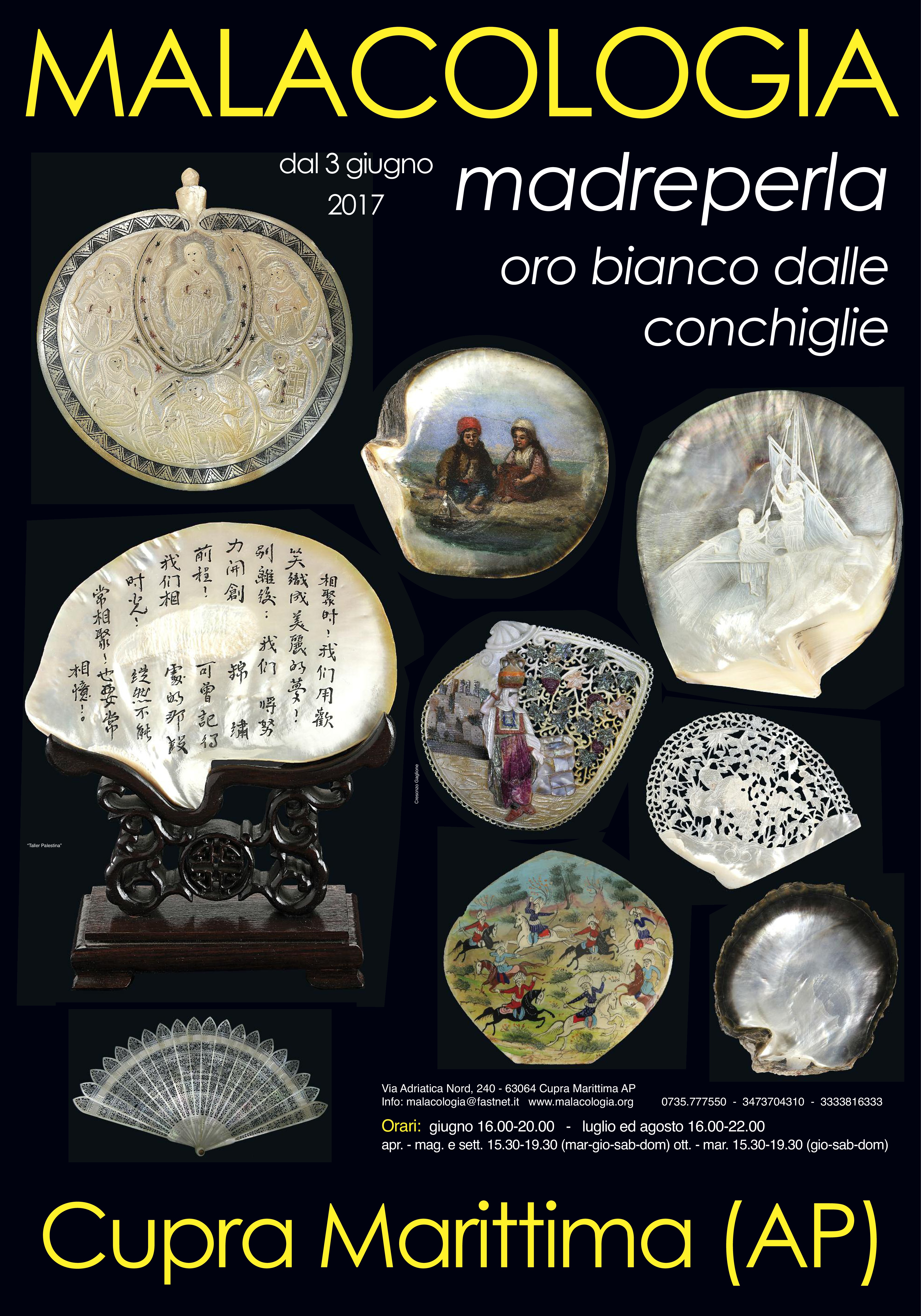 CUPRA MARITTIMA – Il Direttore del Museo Malacologico di Cupra Marittima, Tiziano Cossignani, informa che oggi , giovedì 11 maggio, alle ore 11 e alle ore 16, verrà presentata alla Stampa, in anteprima, la grande mostra-evento per l’estate “Madreperla oro bianco dalle conchiglie” con oggetti da tutto il mondo, dal 1600 ai nostri giorni.