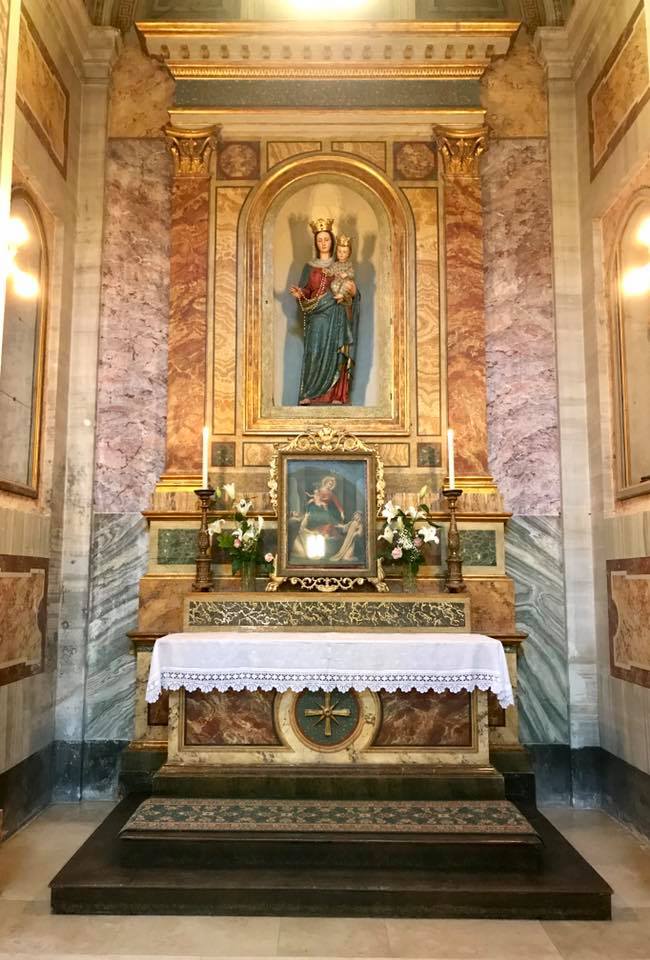 MONTALTO MARCHE – Al suono festoso delle campane della Basilica Concattedrale, a mezzogiorno di lunedì 8 maggio 2017, come ogni anno, un nuvolo di Fedeli montaltesi, insieme al Parroco don Lorenzo Bruni, si sono devotamente raccolti davanti all’immagine della Madonna di Pompei, conservata ed esposta tutto l’anno, tranne che nei Tempi forti, sul basamento dell’altare della seconda Cappella di destra, dedicato proprio alla Regina Sacratissimi Rosarii, per recitare la tradizionale supplica.