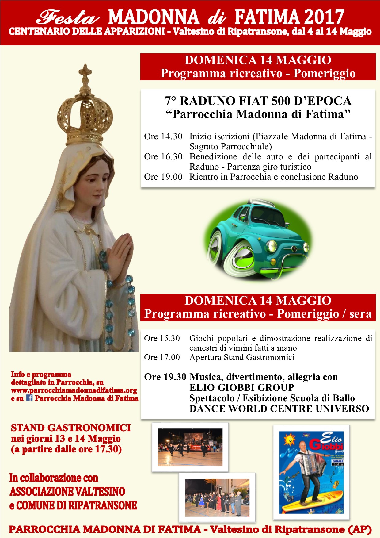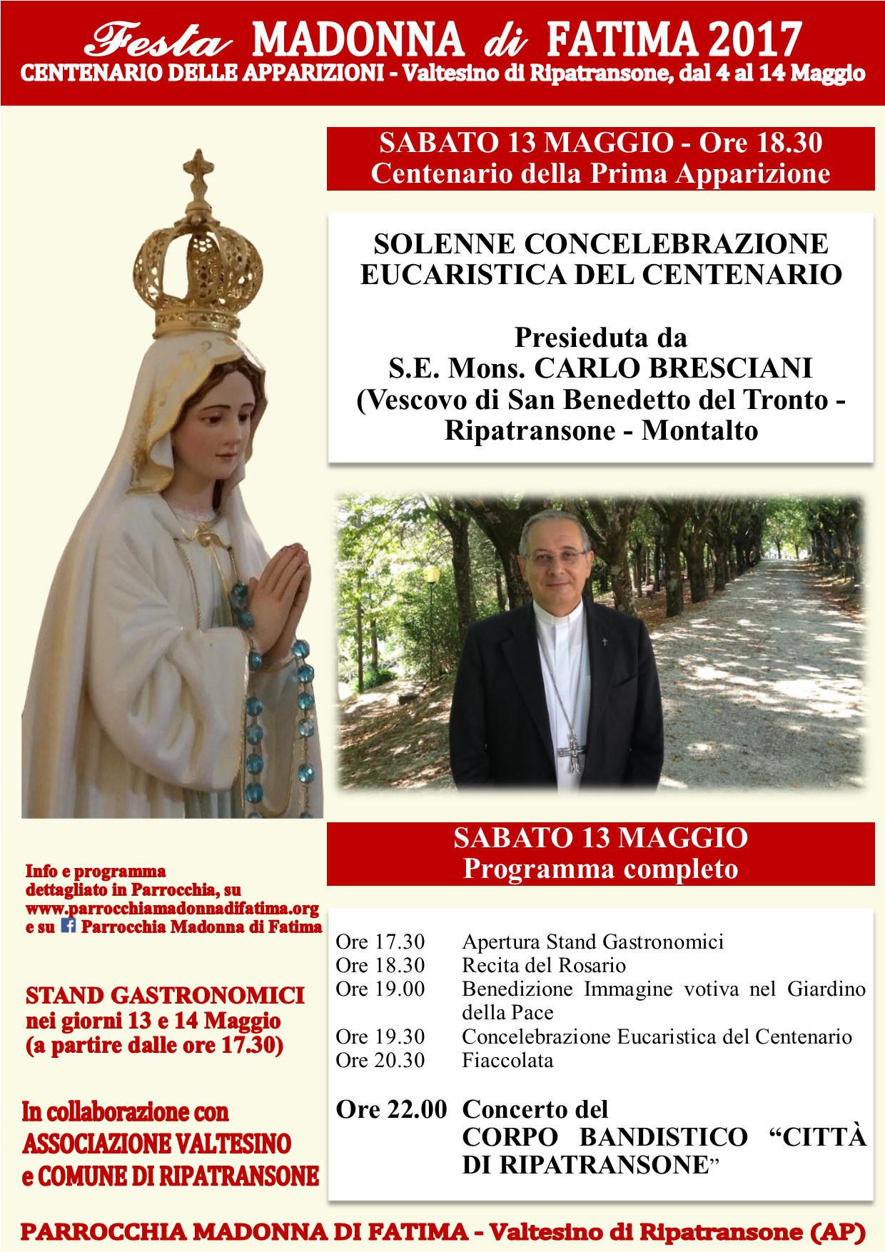 Informazioni dettagliate sul programma sono disponibili in Parrocchia, sul nostro Sito Internet www.parrocchiamadonnadifatima.org e sulla nostra Pagina Facebook Ufficiale Parrocchia Madonna di Fatima (https://www.facebook.com/ParrocchiaMadonnaDiFatimaValtesinoRipatransoneAp/?ref=page_internal )