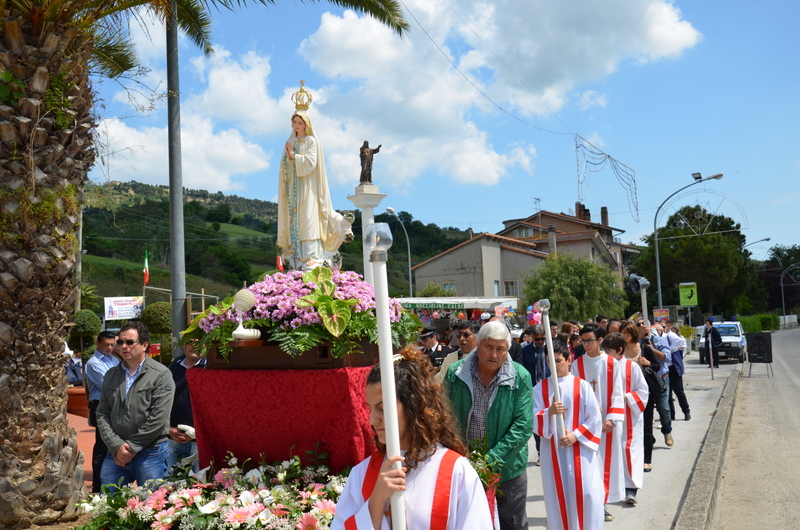La Festa, però, non si ferma oggi ma proseguirà anche nella giornata di domani, Domenica 14 Maggio. In mattinata, a partire dalle ore 10.00, accoglieremo in Parrocchia il nostro Vescovo Emerito Gervasio Gestori che presiederà la Celebrazione Eucaristica e la successiva Processione con l’Immagine della Madonna. Nel pomeriggio, poi, oltre alla Celebrazione Eucaristica delle 18.30 presieduta da Mons. Vincenzo Catani, nostro ex Parroco, spazio alla Festa popolare, ai giochi, alla musica con Elio Giobbi Group ed allo spettacolo con l’esibizione degli alunni della Scuola di Ballo Dance World Centre Universo.